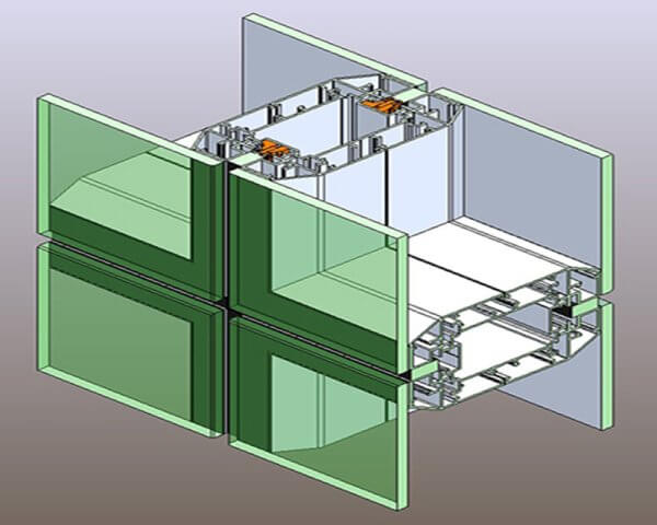 OB1-120 ofis bölmə sistemində; Zavod şəraitində yığılmış çərçivəsiz şüşə görünüşlü struktur şüşə blokları; Çox yüksək UV müqavimətinə malik 3M VHB yapışdırıcı lentlə gizli alüminium çərçivəyə 6 mm şüşənin yapışdırılması ilə formalaşmış prefabrik monoblok blok.